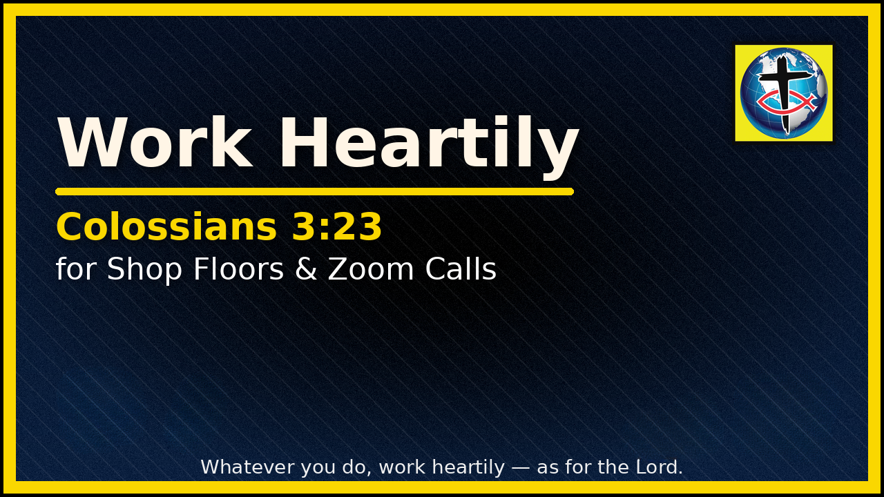 "Whatever you do, work at it with all your heart, as working for the Lord, not for human masters" Most of us can quote Colossians 3:23 (NIV). Living it, from the loading dock to the sales deck, is the real test. The verse doesn’t shrink work into a Sunday slogan; it expands ordinary tasks into worship. It reminds us that the work itself can glorify the Lord, whether we steward a company or clock in for a shift. It doesn’t demand frenzy or half-hearted effort but faithful, wholehearted labor that looks for Him in the middle of an ordinary day.